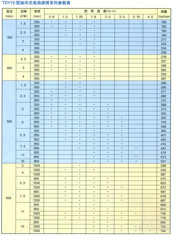TDY75油冷式電動滾筒是供各種固定式帶式輸送機配套使用的內驅動裝置,與外驅動裝置相比,具有結構緊湊,占用空間面積小,使用維護方便,操作可靠,密封性好,能適用于粉塵濃度大、潮濕泥濘的工作場所等特點。可滿足各種逆止、包膠等要求。